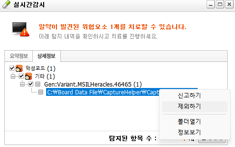 현재 '알약(Alyac)' 백신 프로그램을 사용하는 일부 PC에서, 새로 적용된 캡쳐 모듈을 바이러스로 오인하여 차단(오탐지)하는 현상이 간헐적으로 발생하고 있습니다.